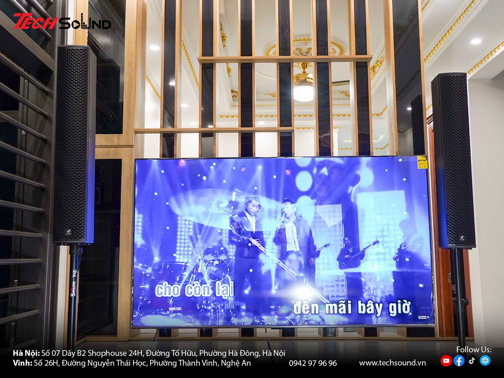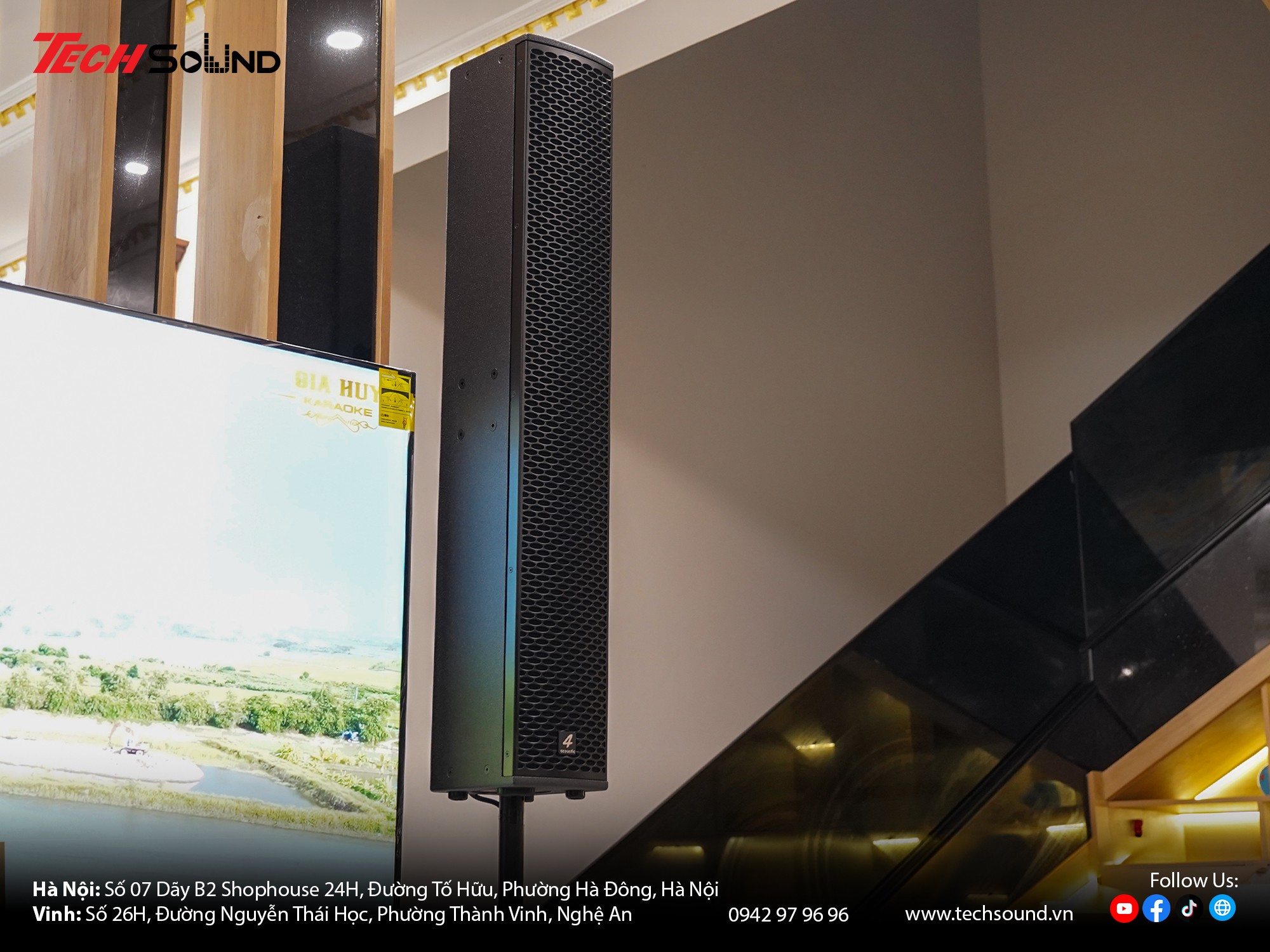 Với nhiều năm kinh nghiệm trong lĩnh vực âm thanh, TECHSOUND tự hào là địa chỉ chuyên cung cấp và lắp đặt dàn karaoke chính hãng cho hàng nghìn khách hàng trên toàn quốc. Chúng tôi không chỉ mang đến sản phẩm chất lượng từ những thương hiệu hàng đầu như 4Acoustic, Nexo, LEA Professional, NSP Audio Professional… mà còn hỗ trợ khảo sát, thiết kế cấu hình phù hợp với từng không gian thực tế. Cam kết lắp đặt chuyên nghiệp, bảo hành nhanh chóng, tư vấn tận tâm từ đội ngũ kỹ thuật giàu kinh nghiệm.