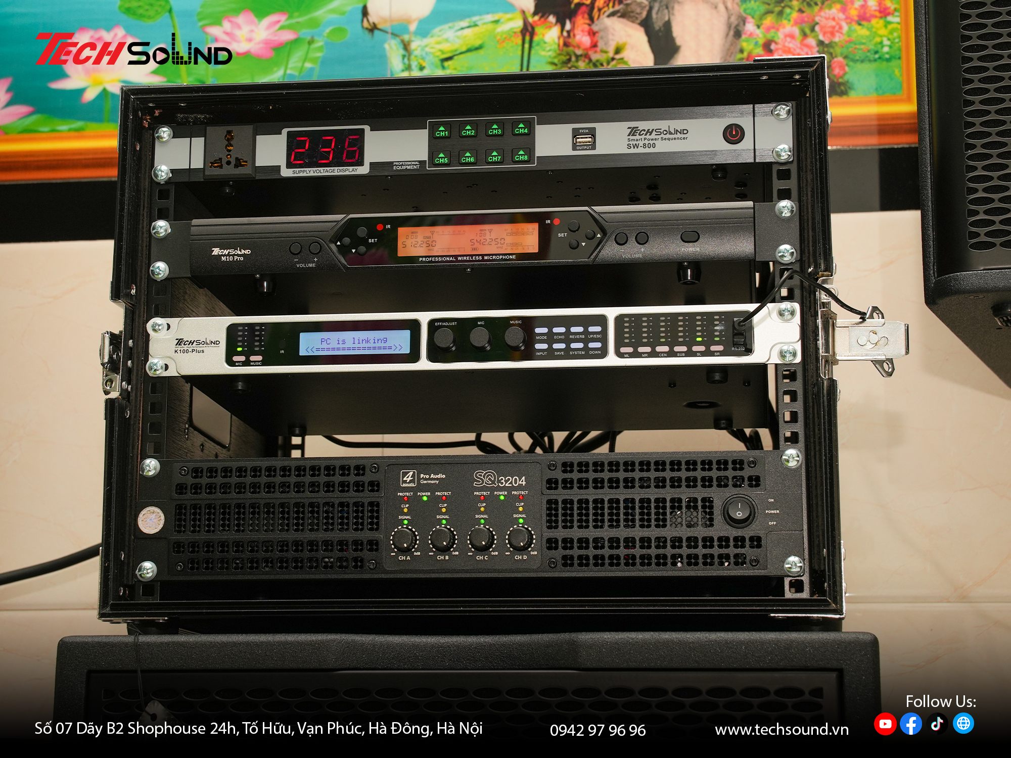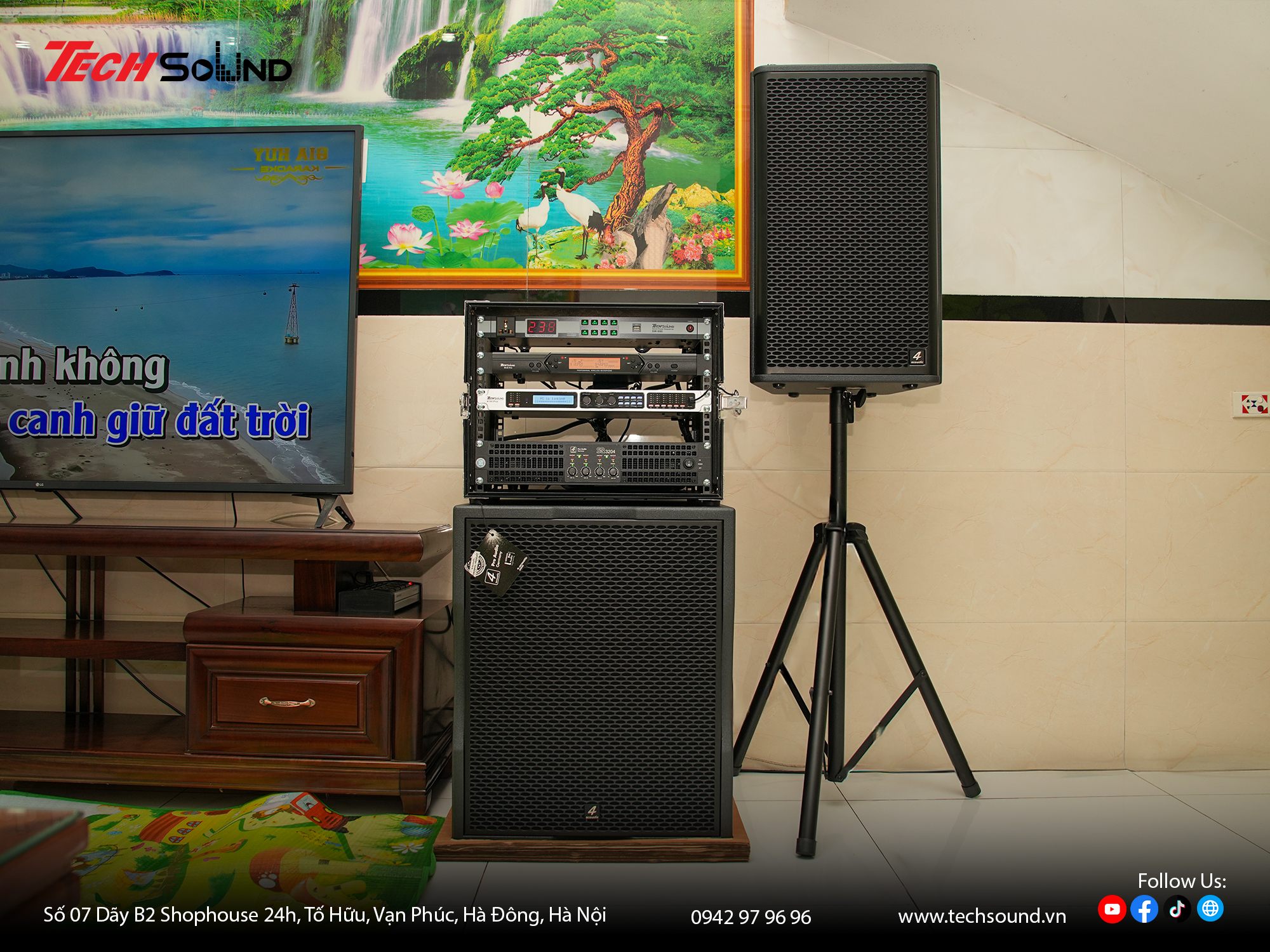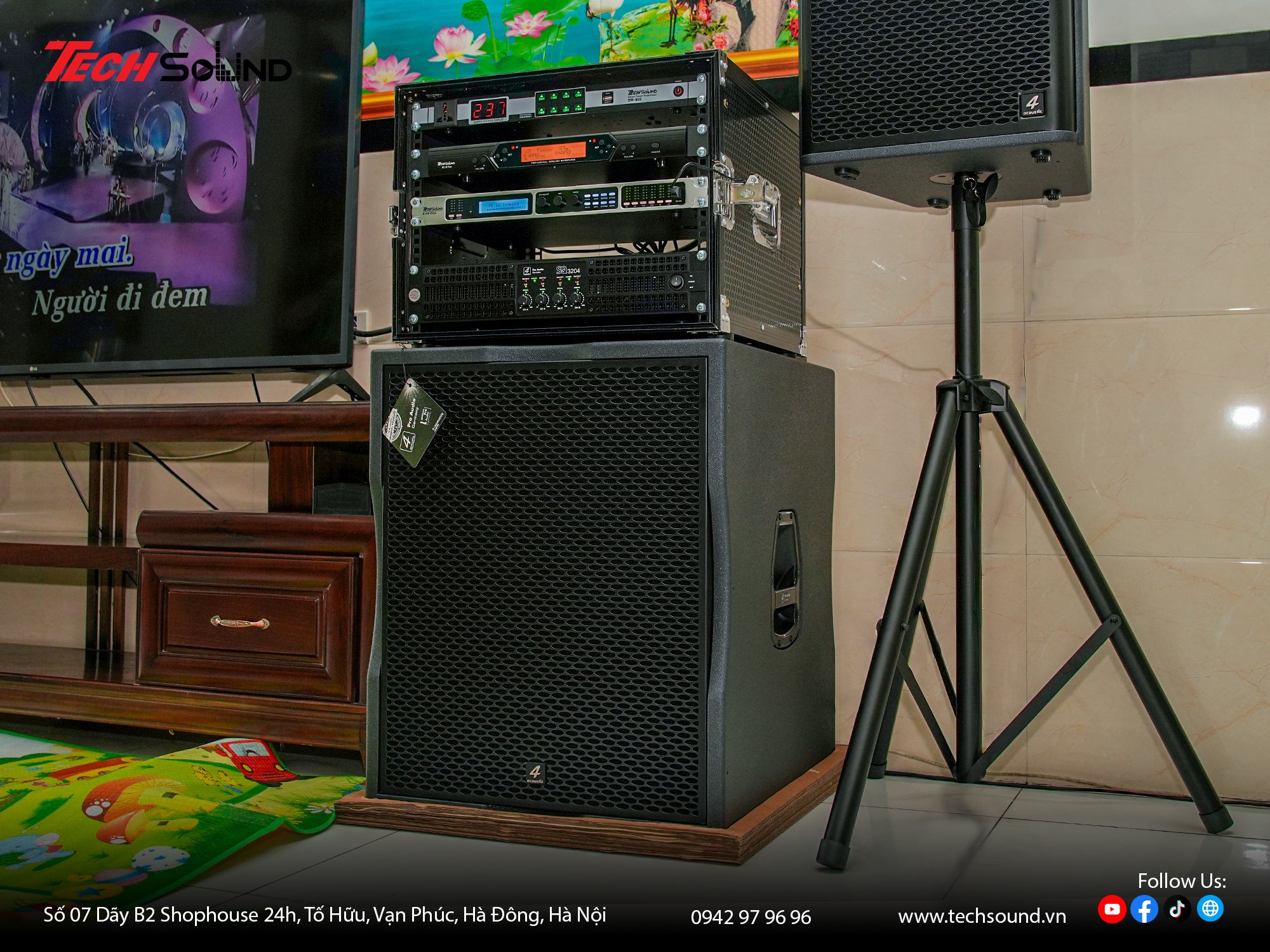 Với nhiều năm kinh nghiệm trong lĩnh vực âm thanh, TECHSOUND tự hào là địa chỉ chuyên cung cấp và lắp đặt dàn karaoke chính hãng cho hàng nghìn khách hàng trên toàn quốc. Chúng tôi không chỉ mang đến sản phẩm chất lượng từ những thương hiệu hàng đầu như 4Acoustic, Nexo, LEA Professional, NSP Audio Professional… mà còn hỗ trợ khảo sát, thiết kế cấu hình phù hợp với từng không gian thực tế. Cam kết lắp đặt chuyên nghiệp, bảo hành nhanh chóng, tư vấn tận tâm từ đội ngũ kỹ thuật giàu kinh nghiệm.
