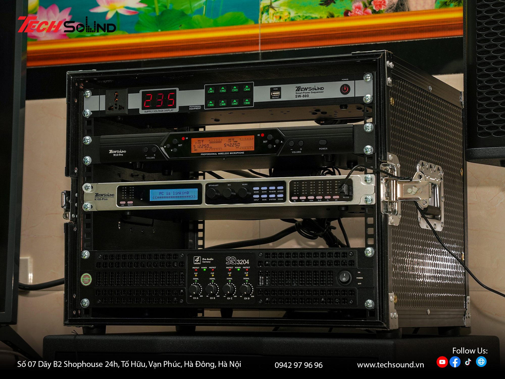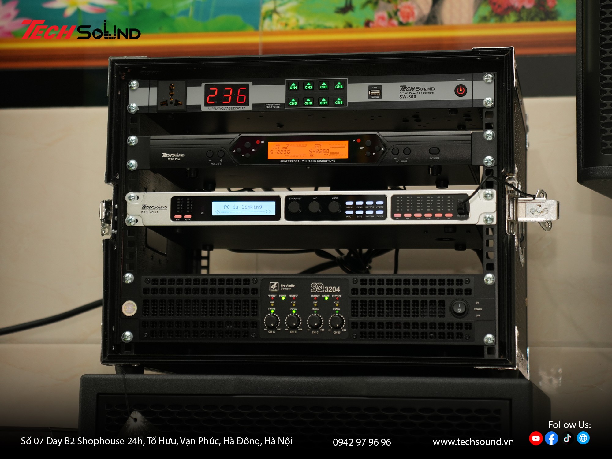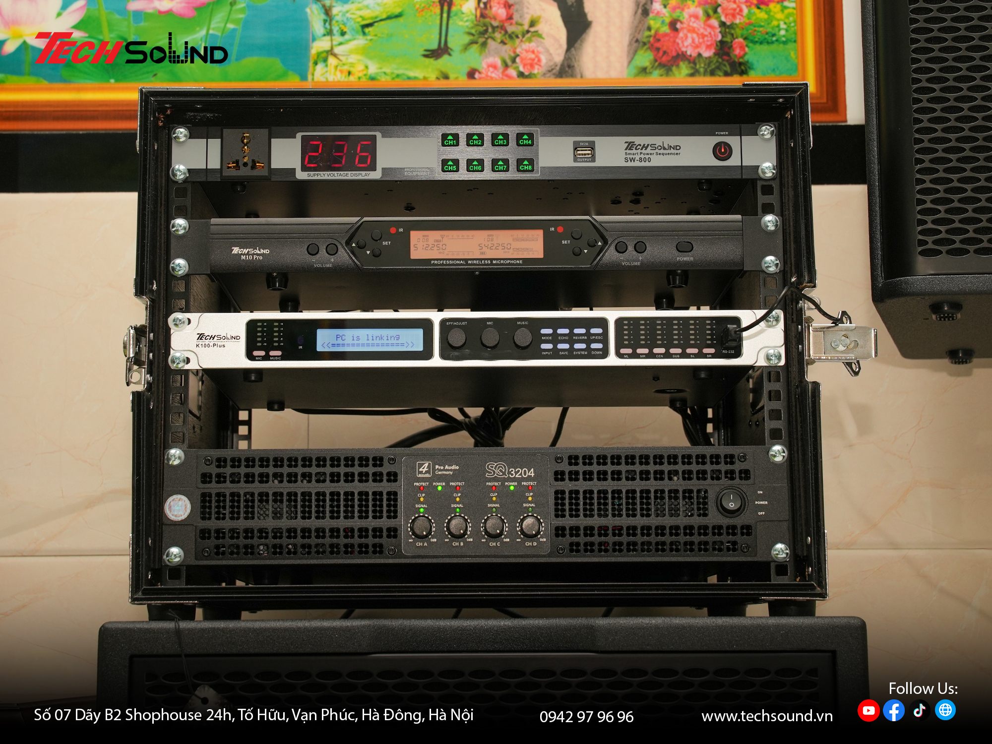 Với nhiều năm kinh nghiệm trong lĩnh vực âm thanh, TECHSOUND tự hào là địa chỉ chuyên cung cấp và lắp đặt dàn karaoke chính hãng cho hàng nghìn khách hàng trên toàn quốc. Chúng tôi không chỉ mang đến sản phẩm chất lượng từ những thương hiệu hàng đầu như 4Acoustic, Nexo, LEA Professional, NSP Audio Professional… mà còn hỗ trợ khảo sát, thiết kế cấu hình phù hợp với từng không gian thực tế. Cam kết lắp đặt chuyên nghiệp, bảo hành nhanh chóng, tư vấn tận tâm từ đội ngũ kỹ thuật giàu kinh nghiệm.