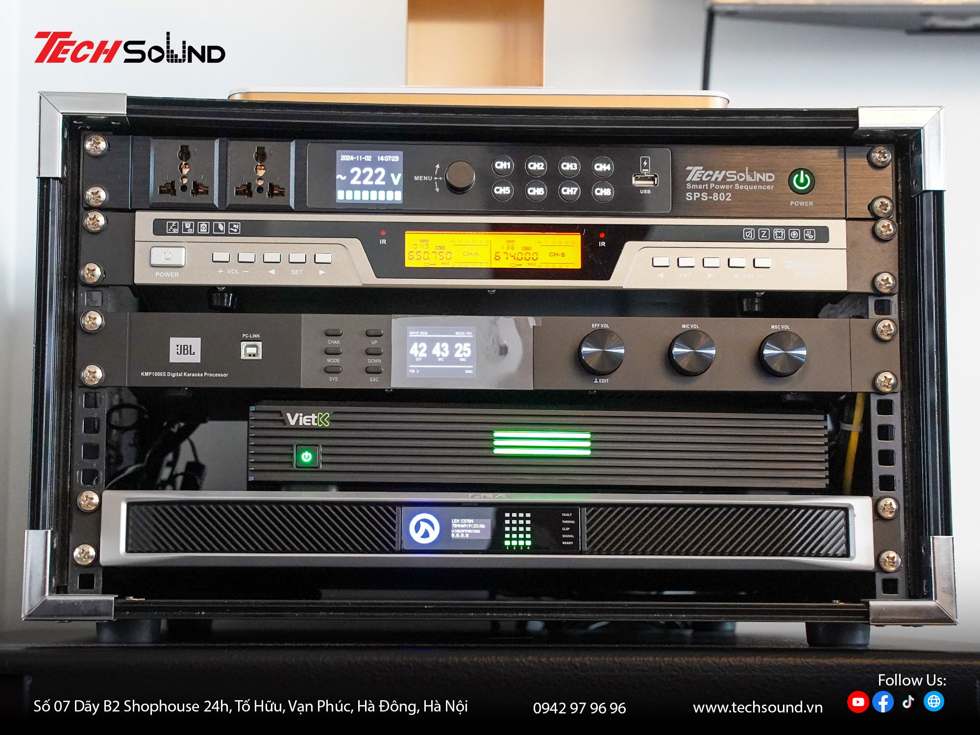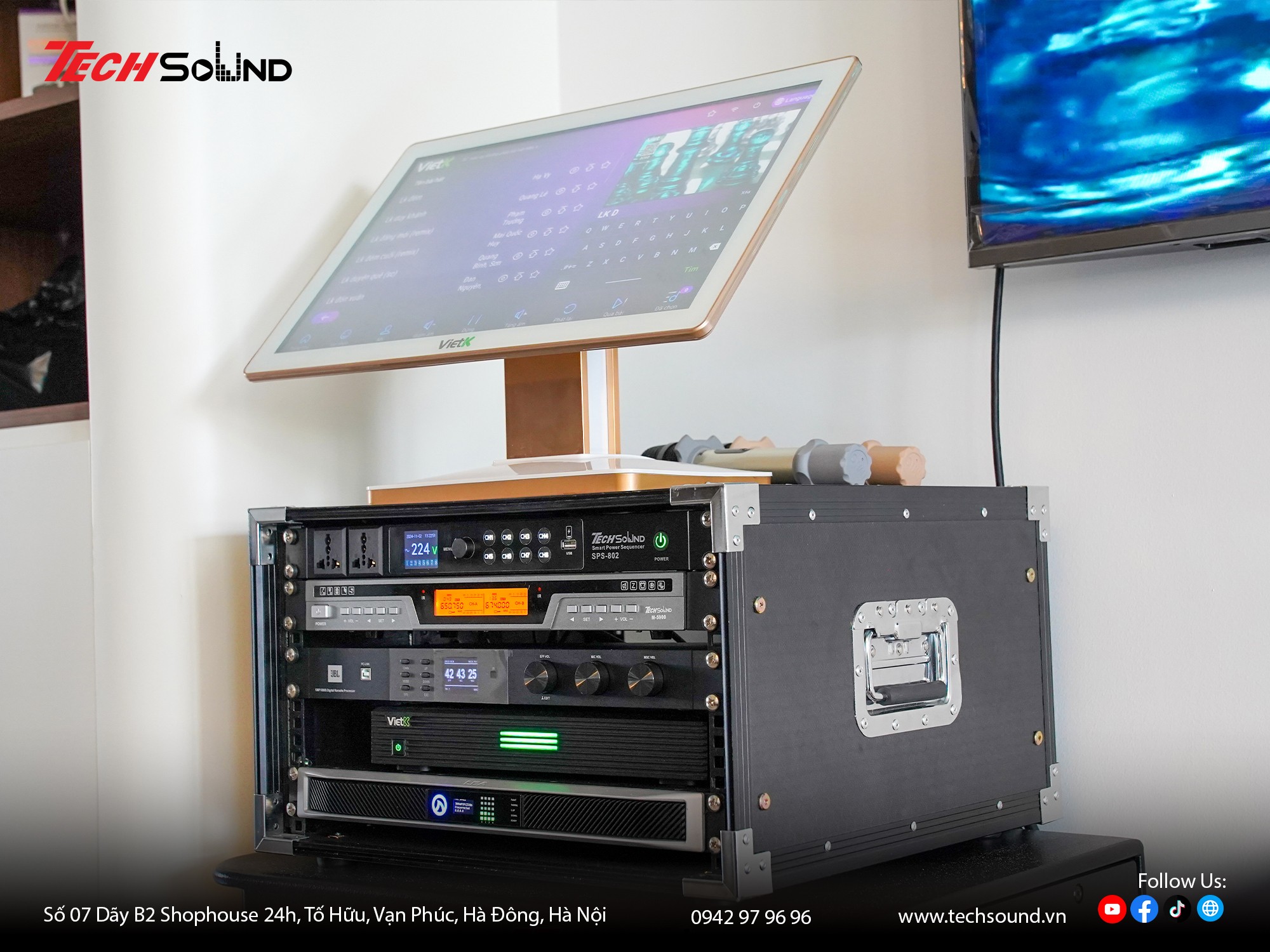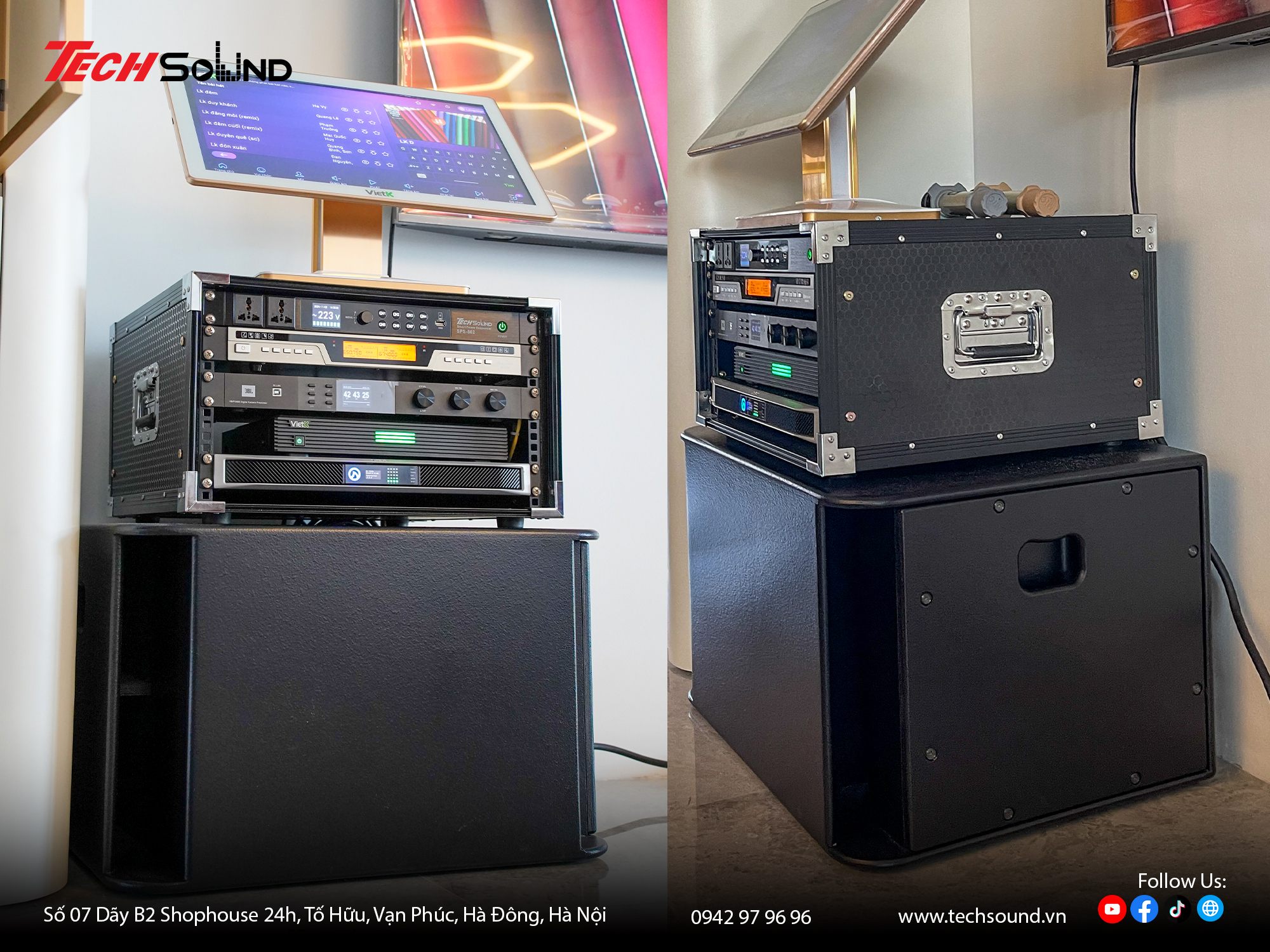 Với nhiều năm kinh nghiệm trong lĩnh vực âm thanh, TECHSOUND tự hào là địa chỉ chuyên cung cấp và lắp đặt dàn karaoke chính hãng cho hàng nghìn khách hàng trên toàn quốc. Chúng tôi không chỉ mang đến sản phẩm chất lượng từ những thương hiệu hàng đầu như 4Acoustic, Nexo, LEA Professional, NSP Audio Professional… mà còn hỗ trợ khảo sát, thiết kế cấu hình phù hợp với từng không gian thực tế. Cam kết lắp đặt chuyên nghiệp, bảo hành nhanh chóng, tư vấn tận tâm từ đội ngũ kỹ thuật giàu kinh nghiệm.