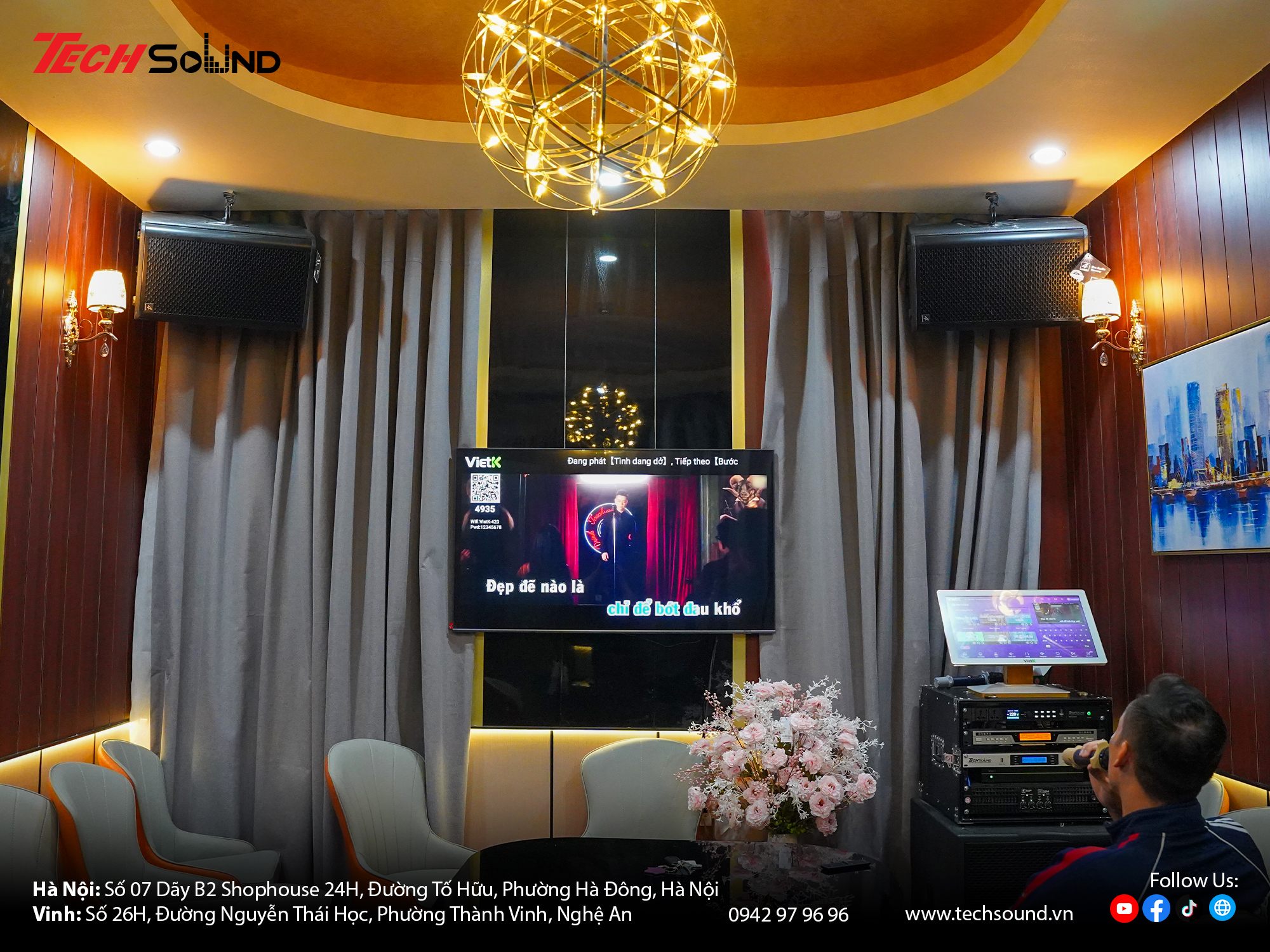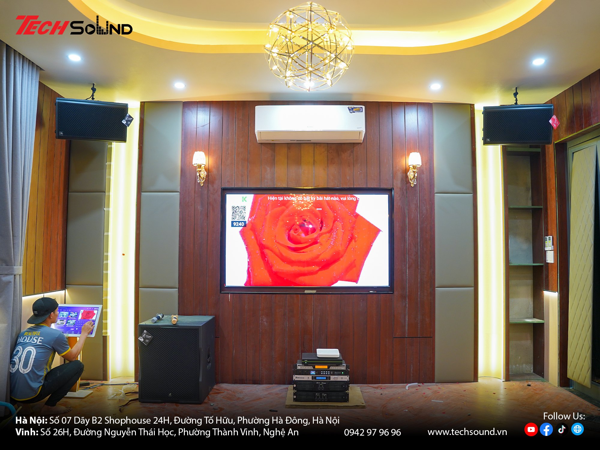 TechSound mang đến không chỉ thiết bị chính hãng mà còn quy trình lắp đặt, tinh chỉnh chuyên nghiệp. Từng dải âm được cân bằng chính xác, đem lại trải nghiệm ca hát và nghe nhạc tối ưu. Những buổi sum họp vì thế trở nên rộn ràng hơn, tiếng hát hòa quyện cùng tiếng cười, tạo nên những kỷ niệm khó phai. Đó chính là giá trị TechSound luôn theo đuổi – mang âm nhạc chạm đến cảm xúc trong từng không gian sống.