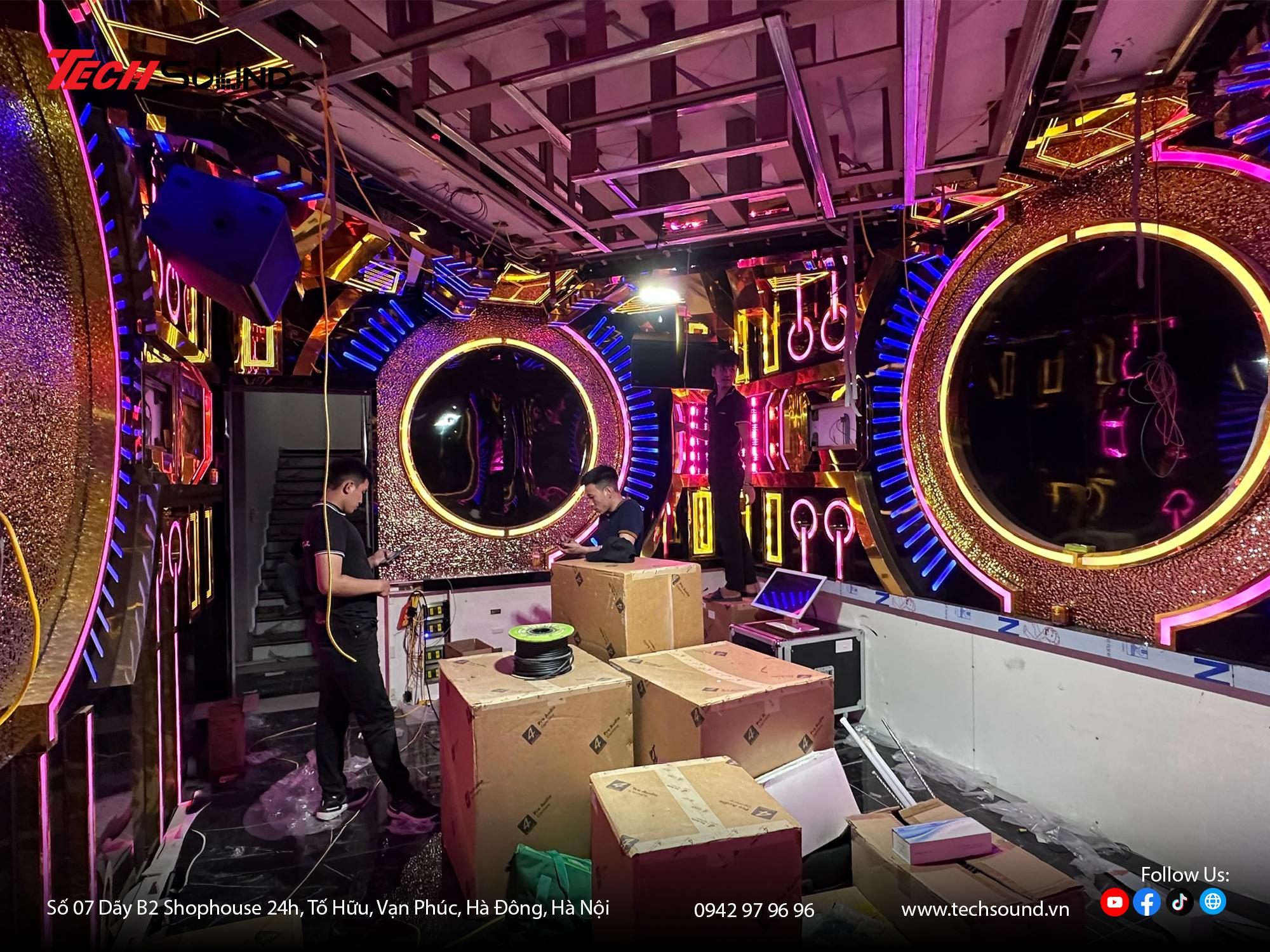 Sau khi hoàn tất quá trình lắp đặt, đội ngũ kỹ thuật viên của TechSound tiến hành kiểm tra tổng thể và tinh chỉnh hệ thống âm thanh một cách tỉ mỉ. Từ việc cân chỉnh âm lượng từng thiết bị, dải tần số hoạt động, độ trễ tín hiệu cho đến hiệu ứng giọng hát đều được điều chỉnh phù hợp với không gian thực tế và nhu cầu sử dụng.