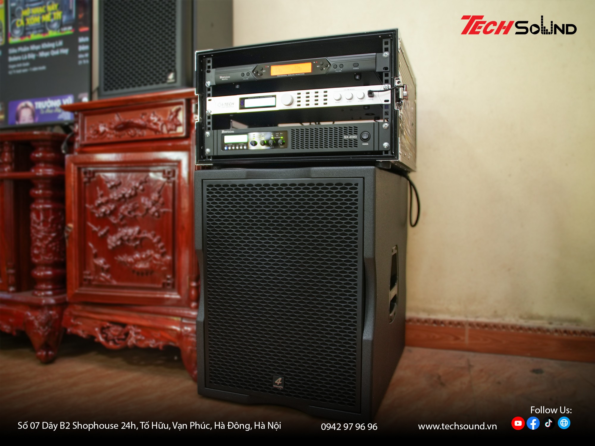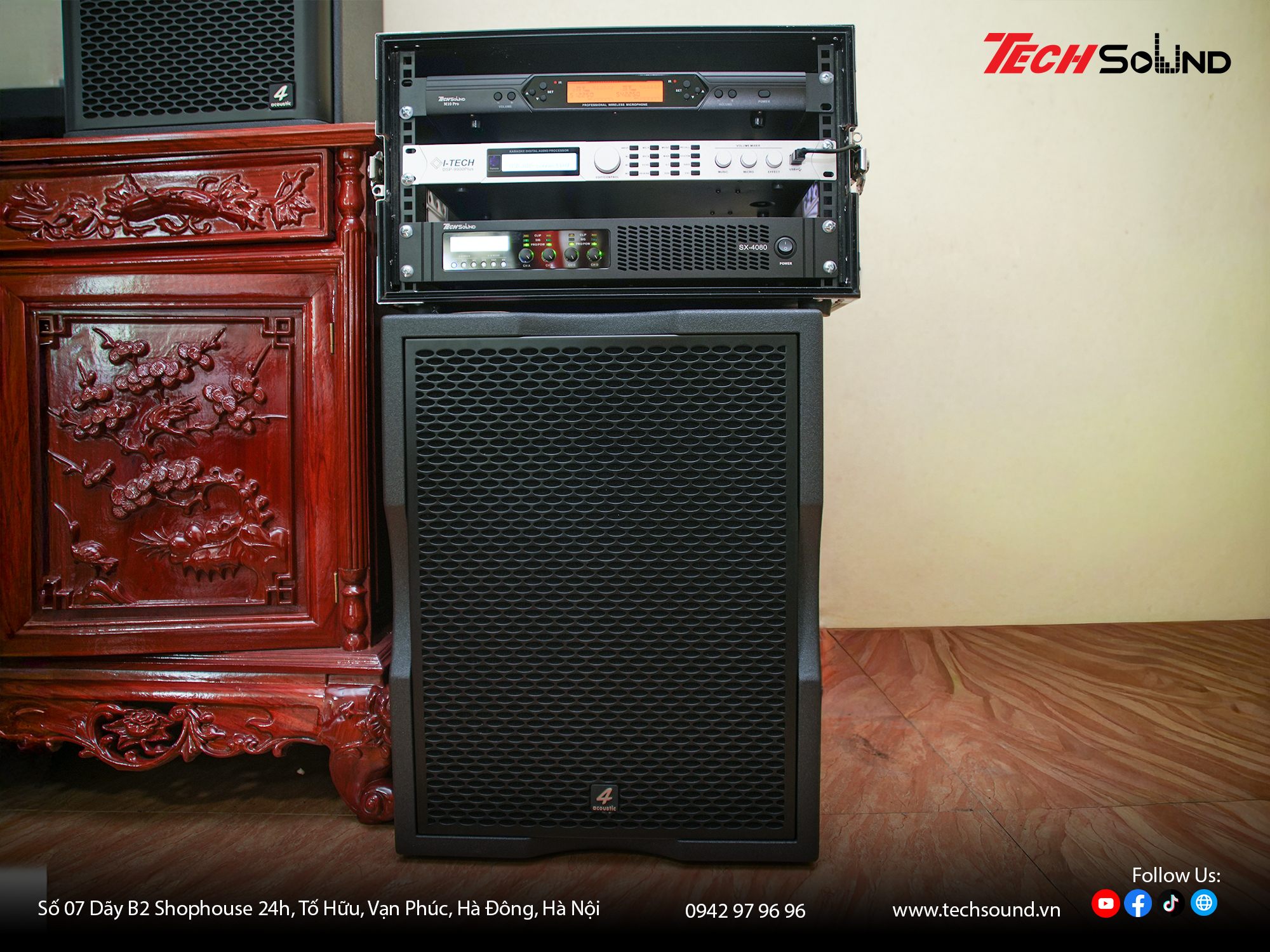 Với nhiều năm kinh nghiệm trong lĩnh vực âm thanh, TECHSOUND tự hào là địa chỉ chuyên cung cấp và lắp đặt dàn karaoke chính hãng cho hàng nghìn khách hàng trên toàn quốc. Chúng tôi không chỉ mang đến sản phẩm chất lượng từ những thương hiệu hàng đầu như 4Acoustic, Nexo, LEA Professional, NSP Audio Professional… mà còn hỗ trợ khảo sát, thiết kế cấu hình phù hợp với từng không gian thực tế. Cam kết lắp đặt chuyên nghiệp, bảo hành nhanh chóng, tư vấn tận tâm từ đội ngũ kỹ thuật giàu kinh nghiệm.