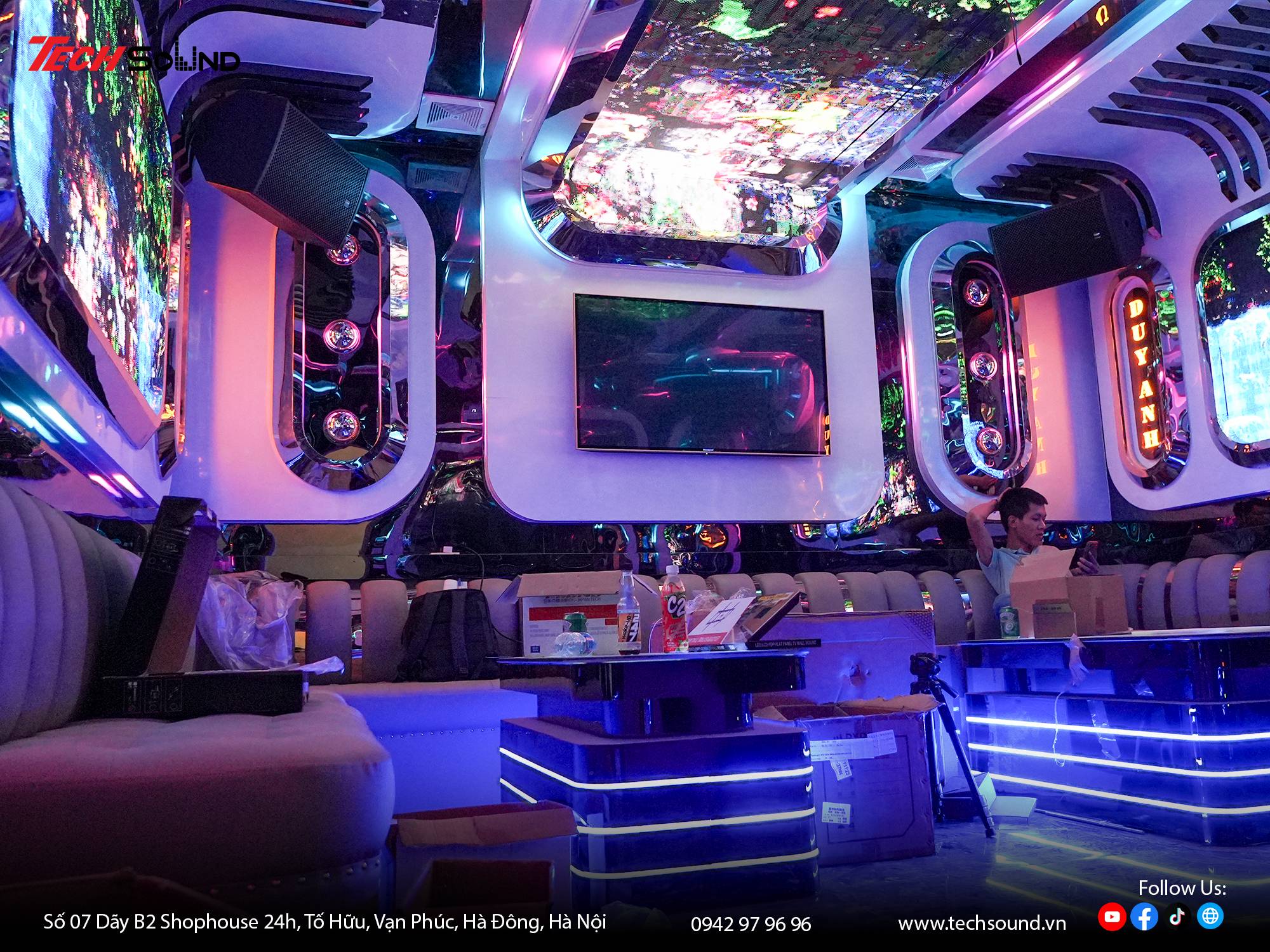 Nắm bắt xu hướng đó, TechSound Việt Nam đã và đang triển khai hàng loạt công trình karaoke chuyên nghiệp trên toàn quốc. Mới đây, đội ngũ TechSound tiếp tục hoàn thiện dự án Karaoke ANH DUY KTV tại Lục Yên – Lào Cai với cấu hình NSP HS12 và sub NSP HS18s, mang đến không gian giải trí hiện đại, đẳng cấp và đậm chất nghệ thuật.