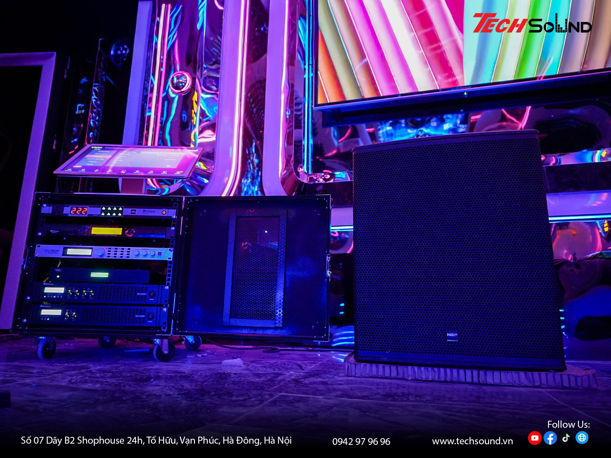 Với nhiều năm kinh nghiệm trong lĩnh vực âm thanh, TECHSOUND tự hào là địa chỉ chuyên cung cấp và lắp đặt dàn karaoke chính hãng cho hàng nghìn khách hàng trên toàn quốc. Chúng tôi không chỉ mang đến sản phẩm chất lượng từ những thương hiệu hàng đầu như 4Acoustic, Nexo, LEA Professional, NST Audio … mà còn hỗ trợ khảo sát, thiết kế cấu hình phù hợp với từng không gian thực tế. Cam kết lắp đặt chuyên nghiệp, bảo hành nhanh chóng, tư vấn tận tâm từ đội ngũ kỹ thuật giàu kinh nghiệm.