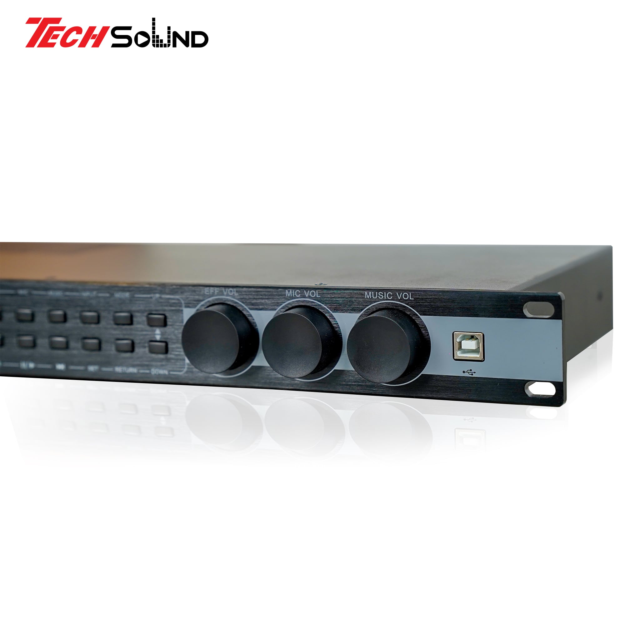 Vang số Techsound K8 Plus giúp chỉnh tiếng Echo và Reverb mềm mại và ngọt ngào hơn. Có 20 Band EQ giúp chỉnh âm được chi tiết hơn, bạn hoàn toàn có thể thay đổi âm sắc của âm thanh thông qua tính năng Equalizer.